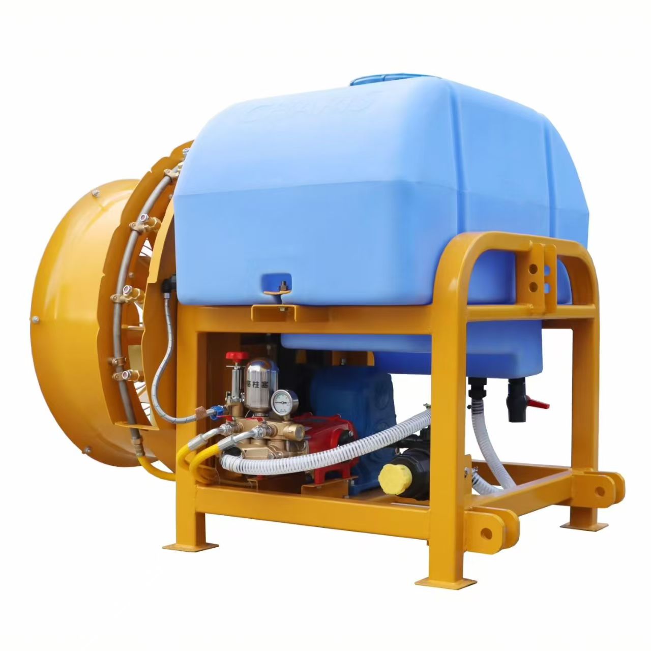 내구성과 성능을 위해 제작된 주요 구성 요소는 고급 소재를 사용합니다. 스프레이 탱크는 식품 등급 폴리에틸렌으로 만들어져 화학 물질로 인한 부식을 방지하고 녹을 방지합니다. 고압 펌프는 장기간 안정적인 작동을 위해 스테인레스 스틸 임펠러를 채택합니다. 송풍 팬은 강화된 유리 섬유 블레이드를 갖추고 있어 가벼운 디자인과 강력한 풍력의 균형을 유지하여 두꺼운 캐노피를 관통합니다. 모든 조인트에는 누출 방지 고무 개스킷을 사용하여 작업 중 누출을 최소화합니다.