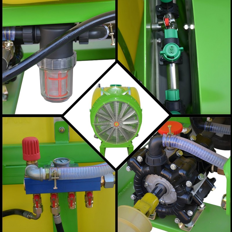 고효율 원심 팬으로 구동되는 이 분무기는 농작물 전체에 물방울을 고르게 전달하는 집중된 공기 흐름(최대 130mph)을 생성합니다. 최적화된 공기 덕트 시스템은 빽빽한 캐노피 속으로 깊숙이 침투하여 나뭇잎 밑면과 기존 분무기로는 닿기 힘든 부분을 덮습니다. 조정 가능한 물방울 크기(80-450μm)와 가변 공기압을 통해 살충제, 제초제 및 액체 비료에 원활하게 적응하여 드리프트를 최소화하면서 철저한 적용 범위의 균형을 유지합니다.