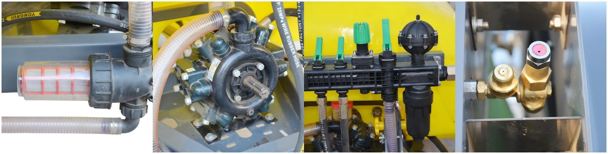 두 번째는 트레일형 스프레이 기계 시스템을 통해 액체를 밀어내는 강력한 힘을 제공하는 고압 다이어프램 펌프입니다. 세 번째는 트레일 스프레이 기계의 다양한 필드 폭에 맞게 확장할 수 있는 조정 가능한 스프레이 붐입니다.